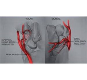 Μια μικρότερη αιμάτωση ξεκινά με παλαμιαίους κλάδους της κερκιδικής αρτηρίας όπου εισέρχονται μέσω του φύματος του σκαφοειδούς και αιματώνουν 20-30 % το περιφερικό τμήμα του οστού.